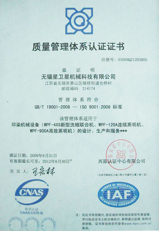 本公司通過ISO9001:2008質(zhì)量管理體系認證