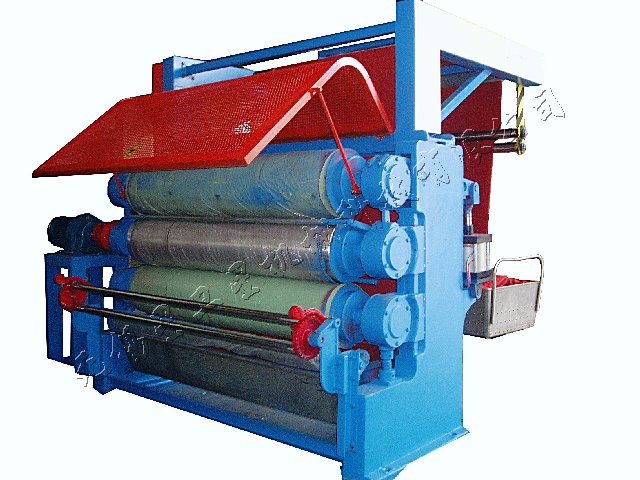 | 加壓方式 | 由氣缸通過(guò)杠桿放大,自上而下加壓,卸壓時(shí)將上面二輥抬起。 | |